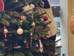 Certaines décorations artisanales fabriquées lors de nos ateliers créatifs ont trouvé leur place sur les branches.