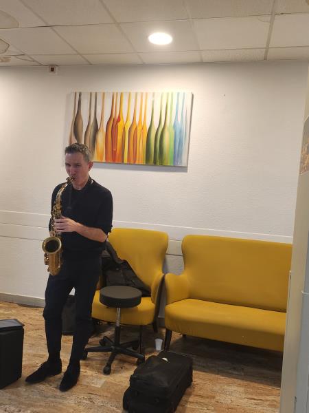 Pour sublimer ce moment gourmand, la soirée a été rythmée par les mélodies d'un saxophoniste professionnel. Entre deux bouchées de pizza, les résidents et leurs familles ont pu se laisser porter par un répertoire élégant, apportant une touche de douceur et de raffinement à cet instant de partage.