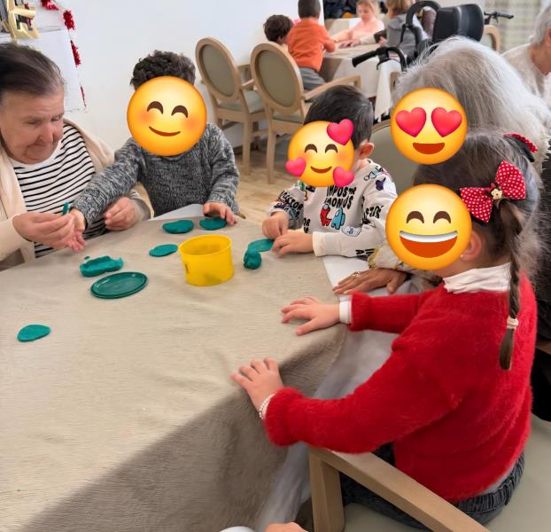 La nouvelle année commence sous le signe de la tendresse et du partage à la Résidence Sainte. Depuis la rentrée, nos couloirs résonnent à nouveau de rires enfantins et de chansons : les élèves de maternelle de l’école Le Corbusier nous font le plaisir de nous rendre visite chaque lundi après-midi.