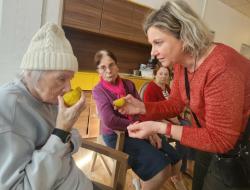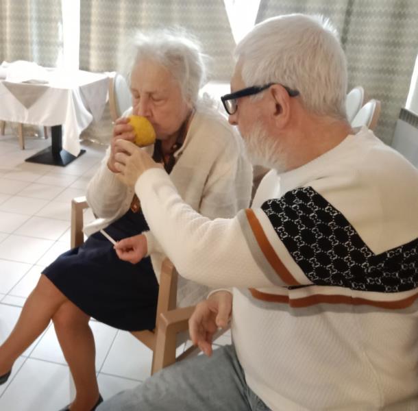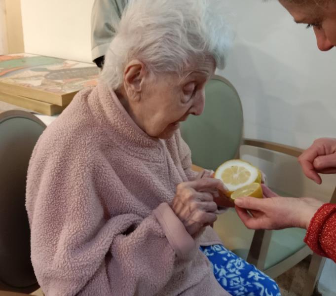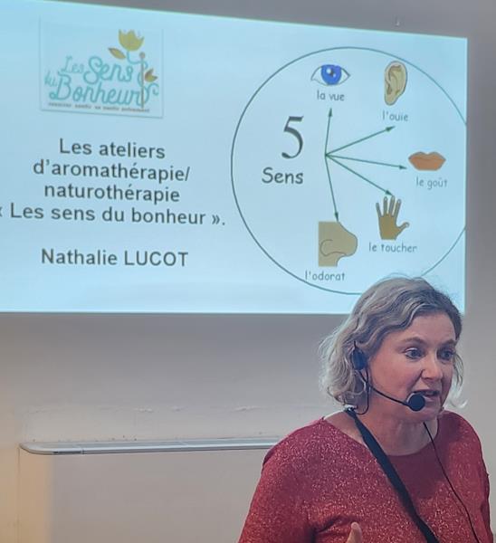 Pour ce premier atelier, nous avons eu le privilège d'accueillir Nathalie LUCOT, formatrice experte en approches multisensorielles et thérapies non médicamenteuses. Elle a su guider nos résidents dans la découverte des huiles essentielles, des fruits et autres pommes de pin transformant une simple séance de soin en une véritable expérience sensorielle.