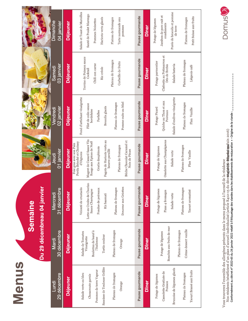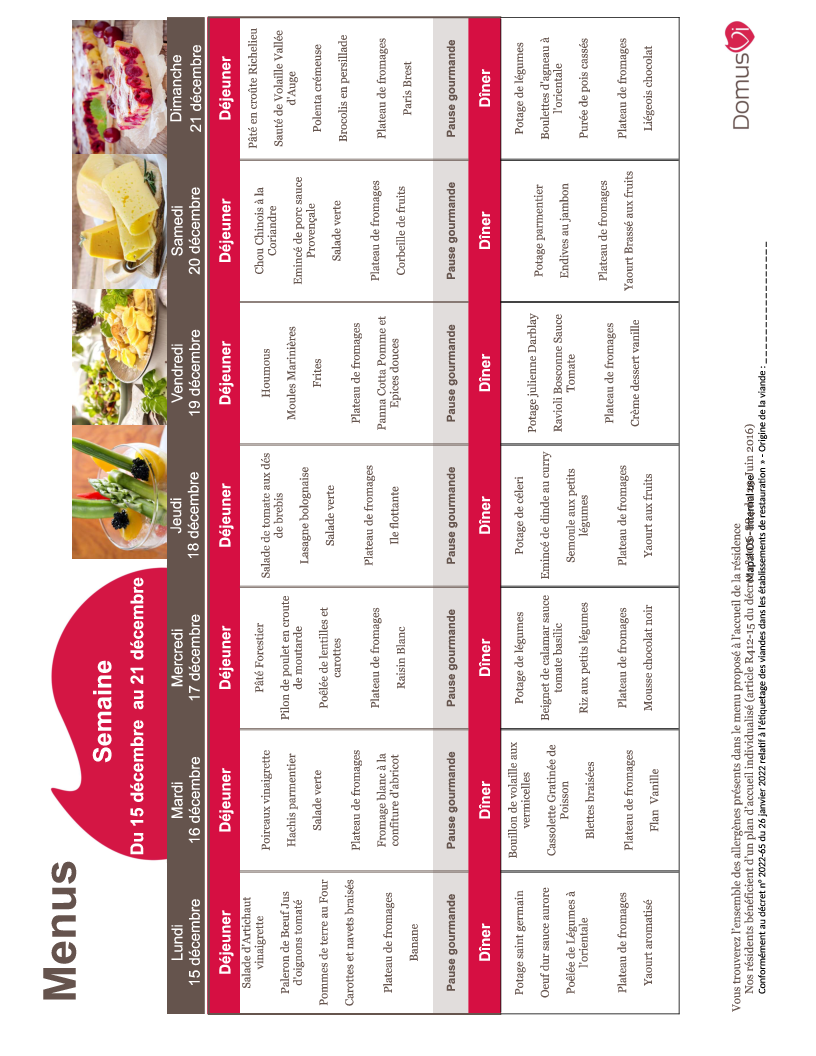 Menu de la semaine